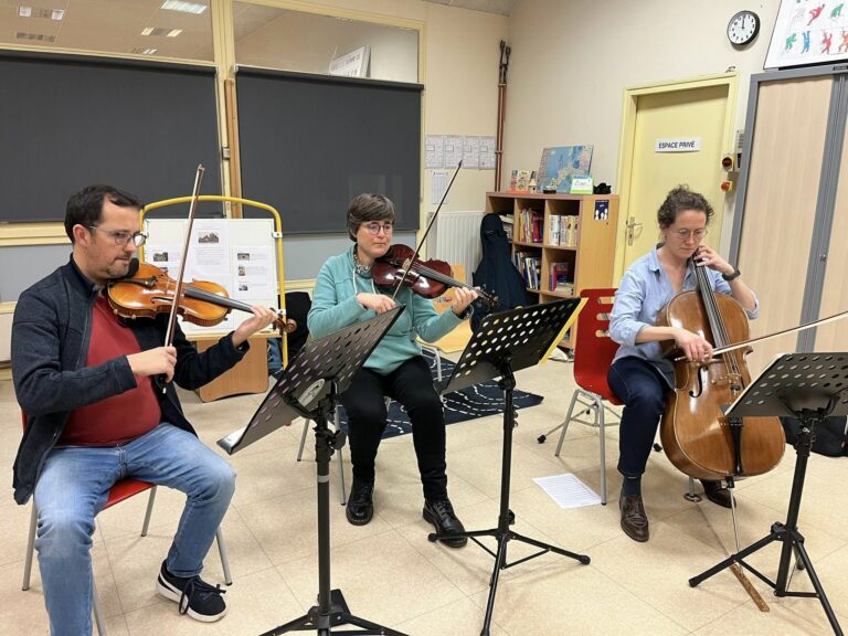 En photo, les musiciens du concert de Noël répétant dans notre nouvelle salle.